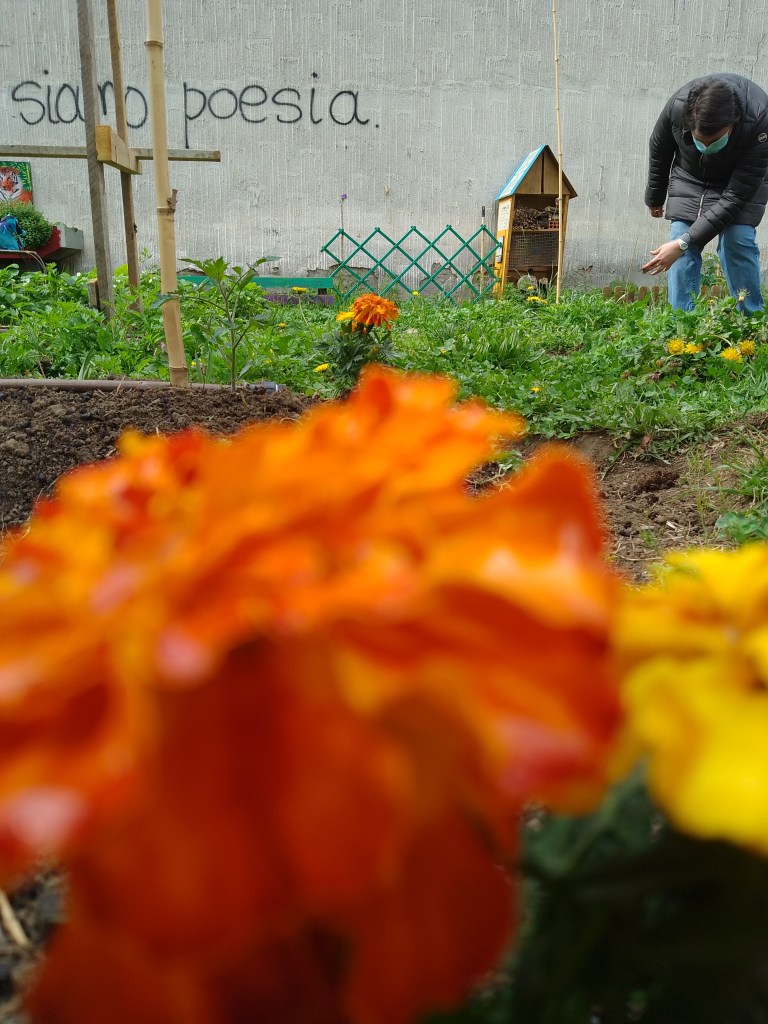 La storia dell’orto: quando il nostro Centro Territoriale si è trasferito in via Nomis abbiamo iniziato a fantasticare su come abitare l’area verde intorno alla palazzina e, insieme ad un piccolo gruppo di persone che frequentano il centro, abbiamo progettato l’orto collettivo e il giardino piccolo, potente e favoloso per accogliere le mamme e i bambini che afferiscono al Consultorio (i nostri vicini di casa).